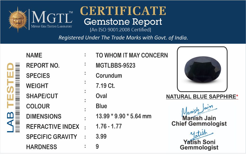 | Weight | 7.19 carat / 7.84 Ratti / 1.44 grams |
