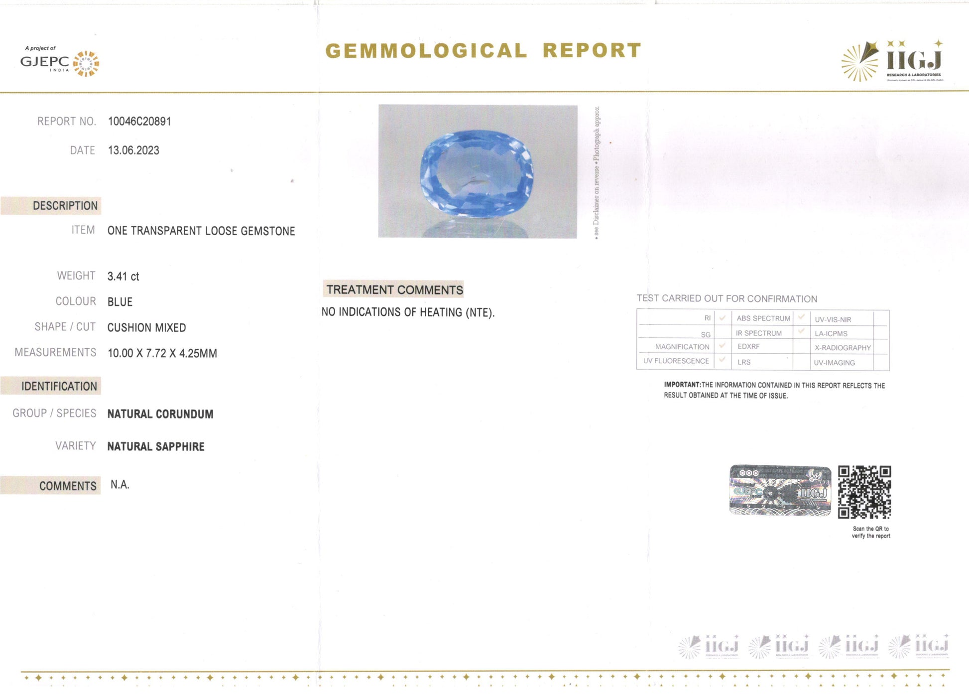| Weight | 3.41 carat / 3.72 Ratti / 0.68 grams |