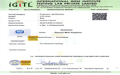 Weight | 3.12 carat / 3.40 Ratti / 0.62 grams |