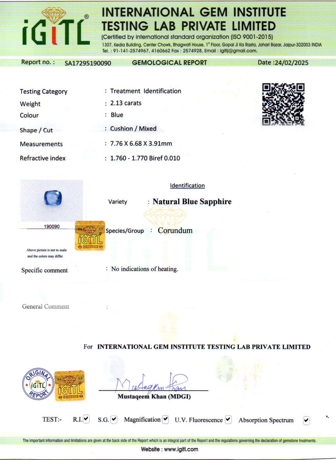 Weight | 2.13 carat / 2.32 Ratti / 0.43 grams |
