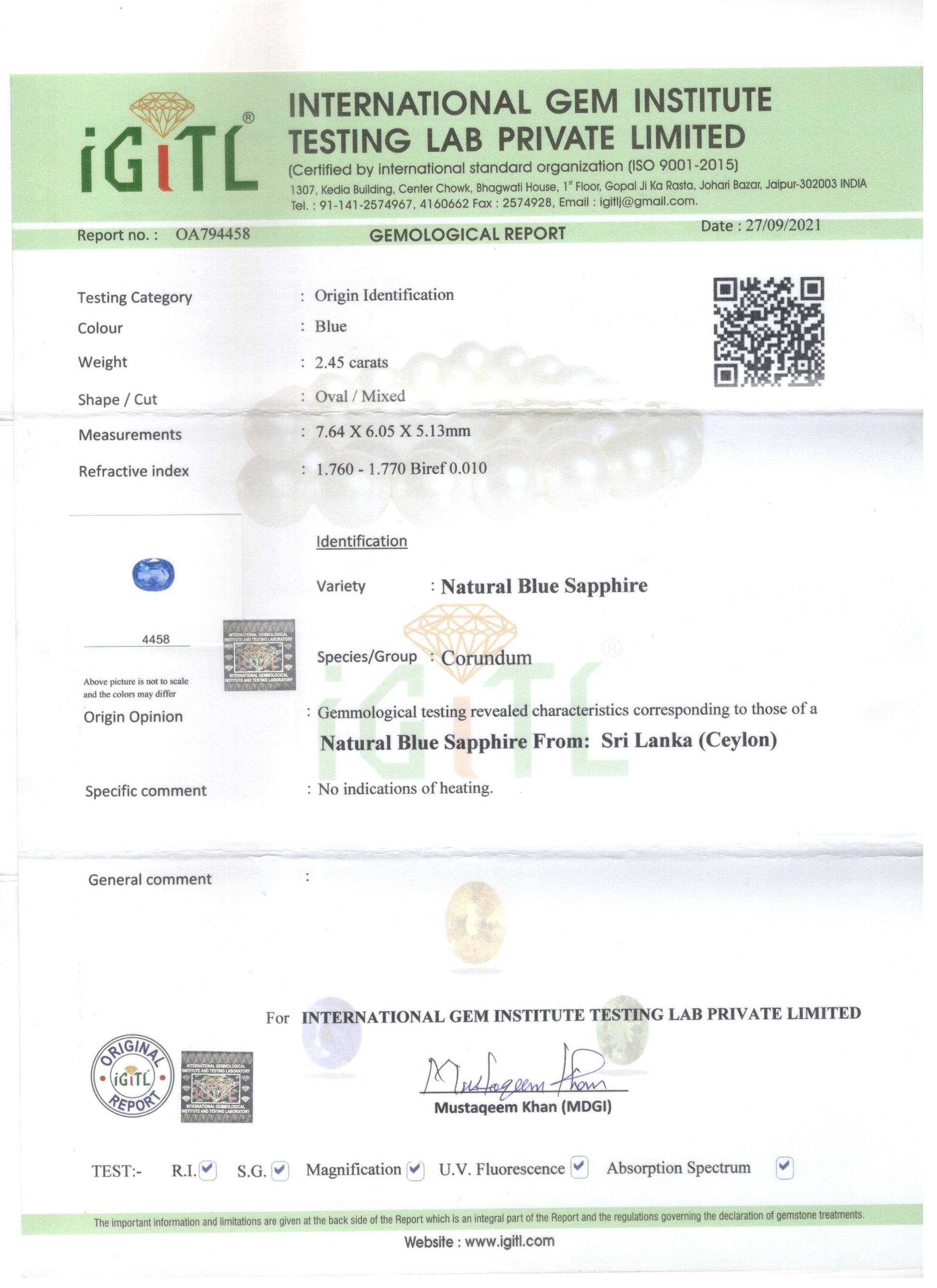 Weight | 2.45 carat / 2.67 Ratti / 0.49 grams |