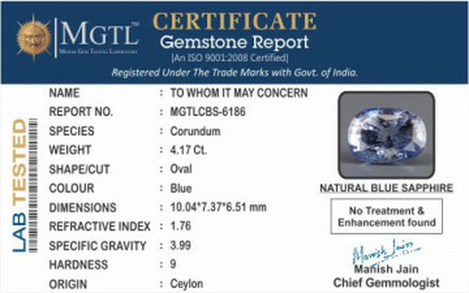 | Weight | 4.17 carat / 4.55 Ratti / 0.83 grams |