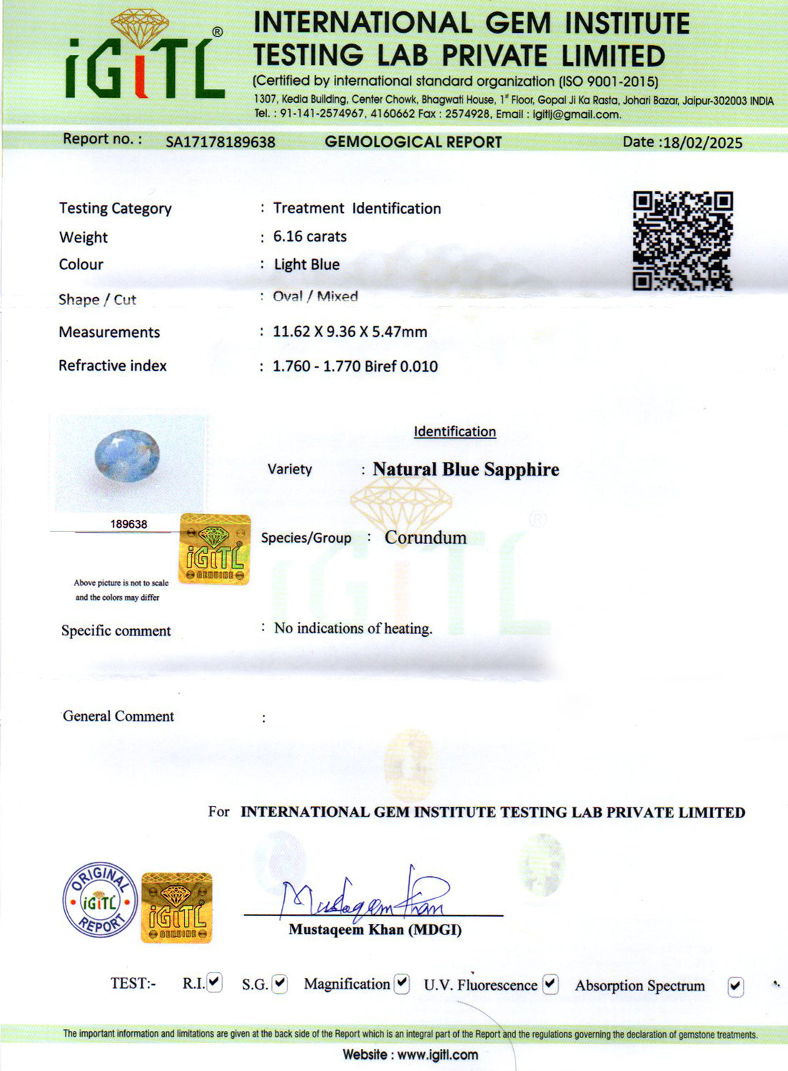 | Weight | 6.16 carat / 6.71 Ratti / 1.23 grams |