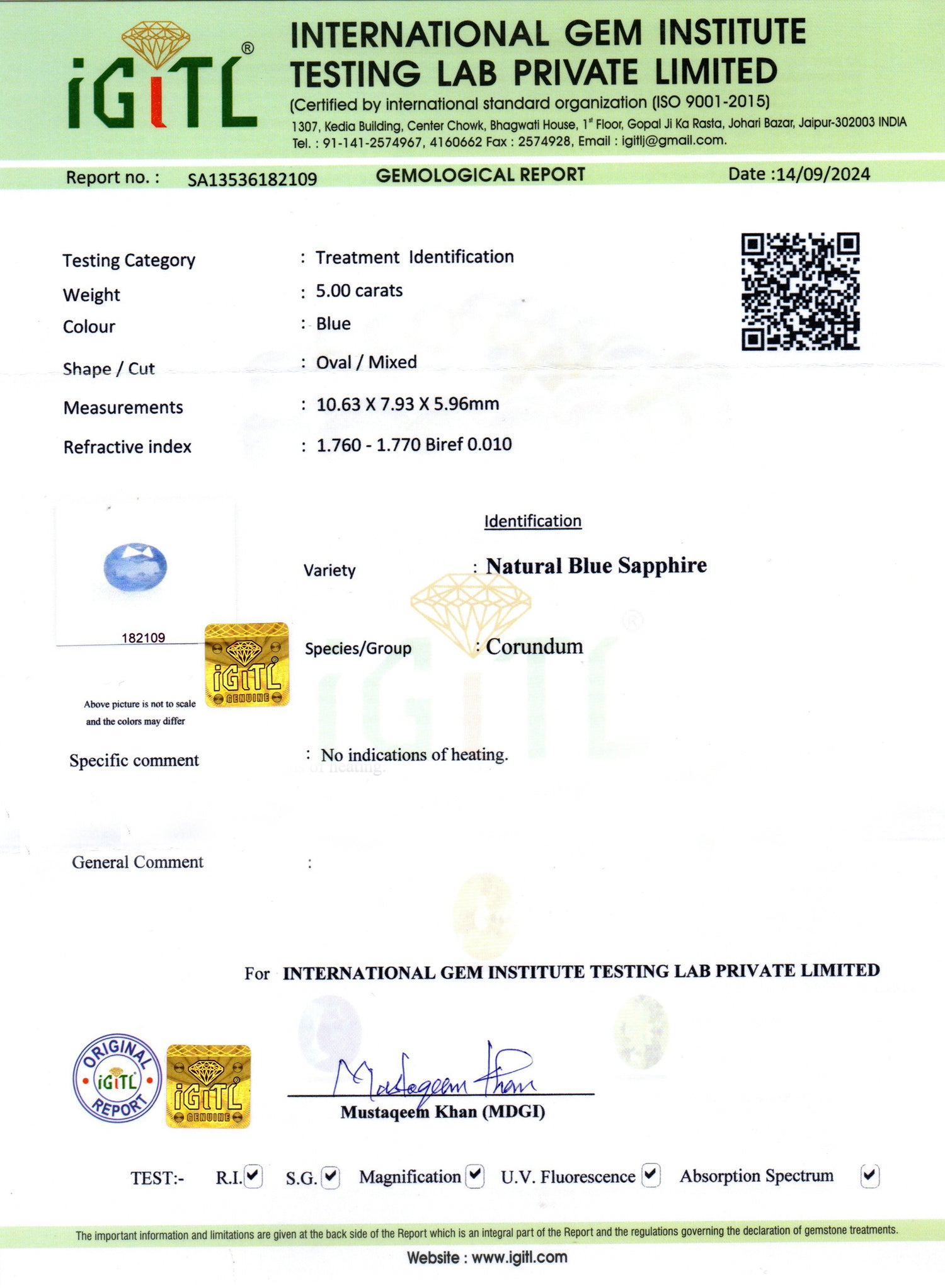 Weight | 5.00 carat / 5.45 Ratti / 1.00 grams |