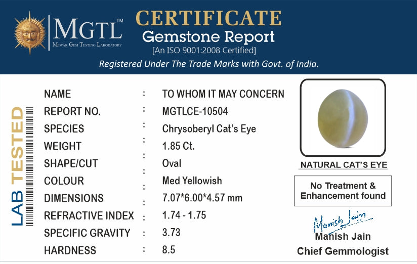 | Gemstone | Cat's Eye Stone (Lehsunia) |