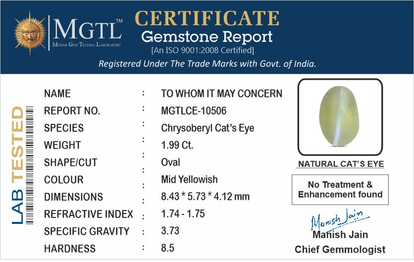 | Gemstone | Cat's Eye Stone (Lehsunia) |
