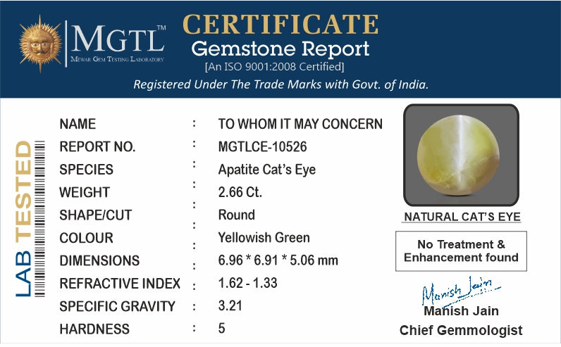 | Gemstone | Cat's Eye Stone (Lehsunia) |