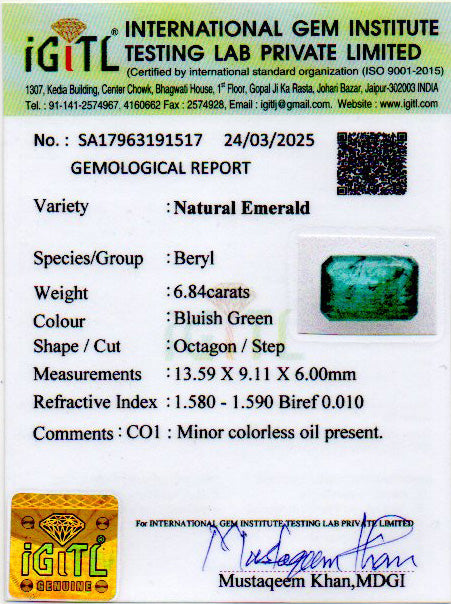| Weight | 6.84 carat / 7.46 Ratti / 1.37 grams |