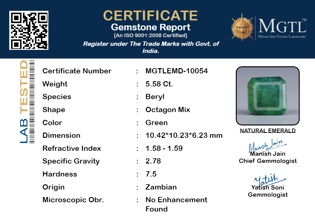 | Gemstone | Emerald (Panna) |