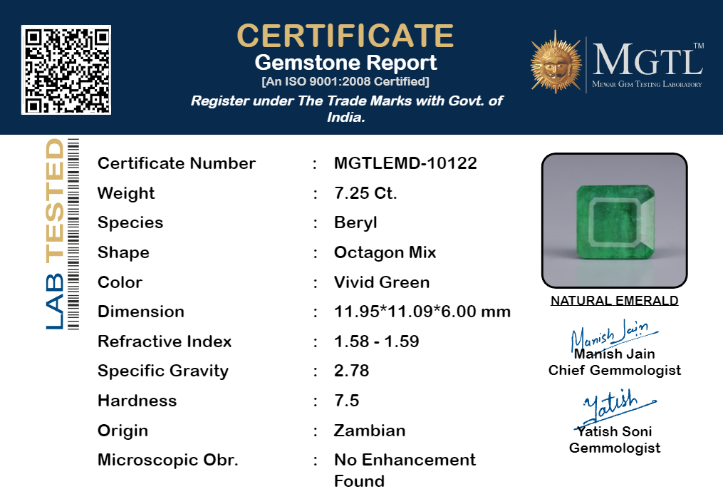 | Weight | 7.25 carat / 7.90 Ratti / 1.45 grams |