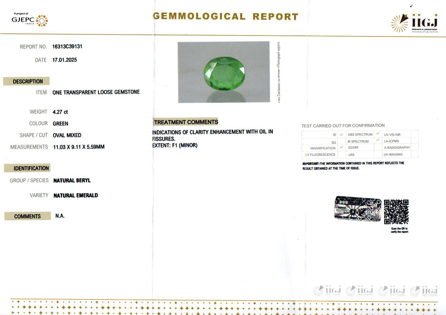 | Weight | 4.27 carat / 4.65 Ratti / 0.85 grams |