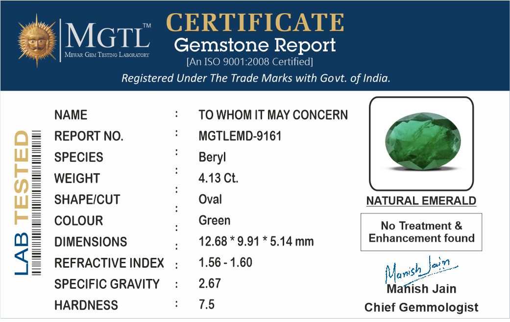 | Gemstone | Emerald (Panna) |
