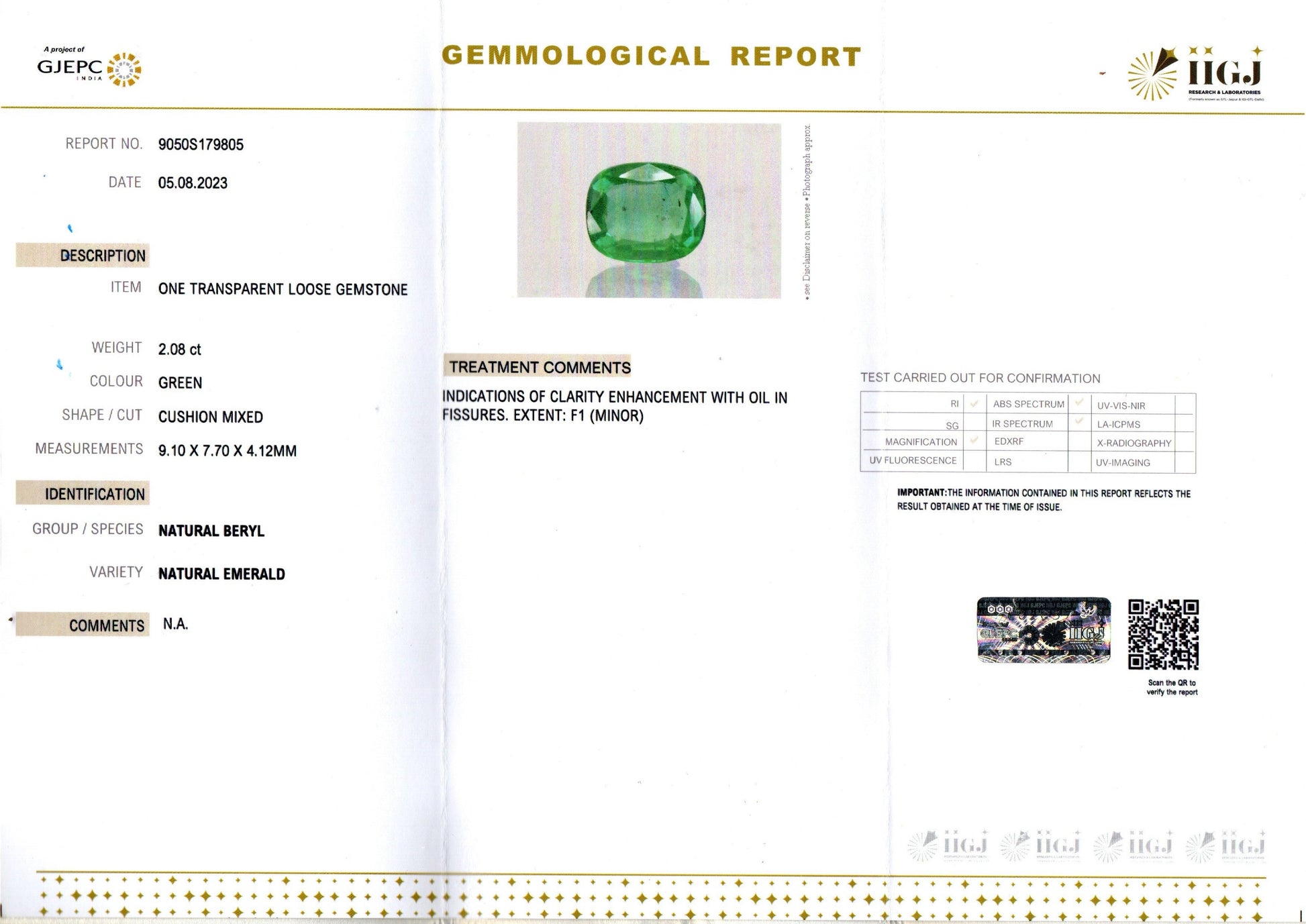 Weight | 2.08 carat / 2.27 Ratti / 0.42 grams |
