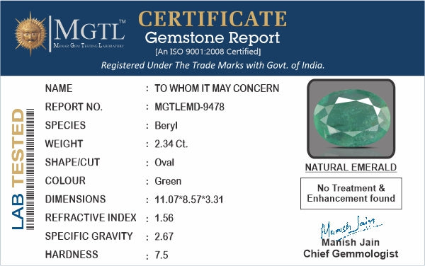 Weight | 2.34 carat / 2.55 Ratti / 0.47 grams |