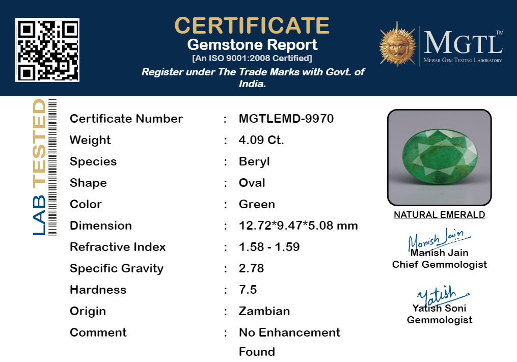 | Weight | 4.09 carat / 4.46 Ratti / 0.82 grams |