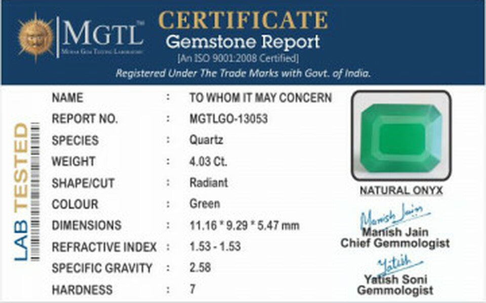 | Gemstone | Green Onyx |