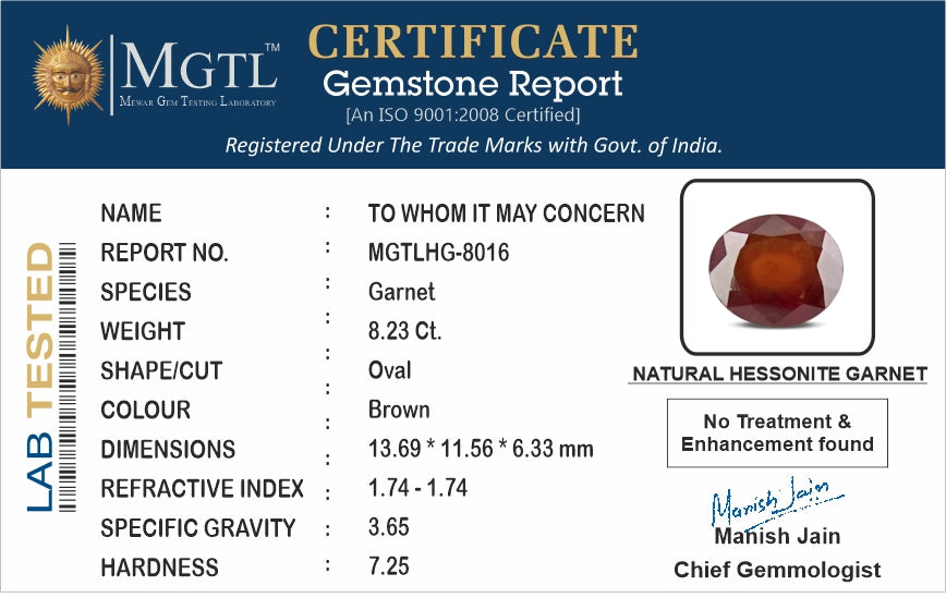 | Weight | 8.23 carat / 8.97 Ratti / 1.65 grams |