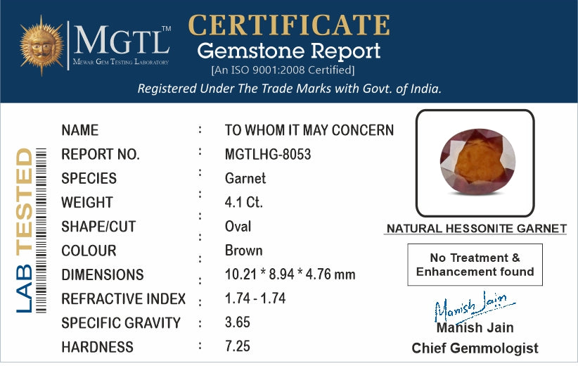 | Gemstone | Gomed Stone (Hessonite) |