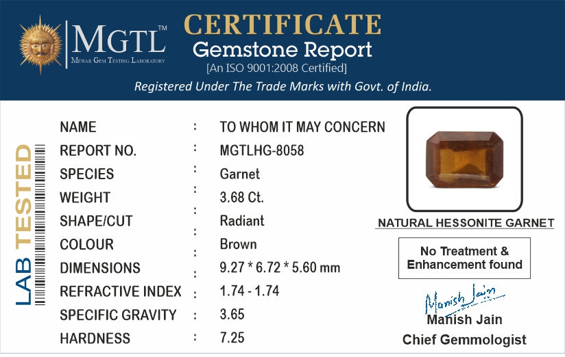 | Weight | 3.68 carat / 4.07 Ratti / 0.74 grams |