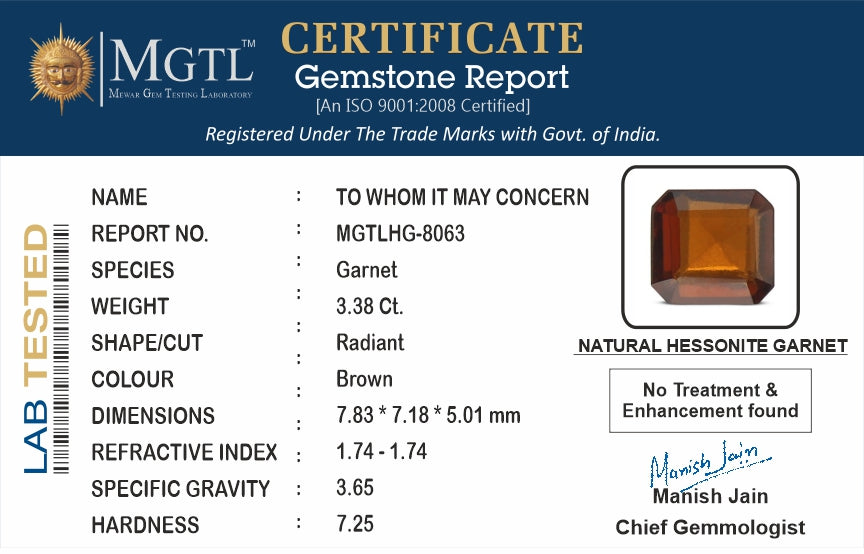 | Weight | 3.38 carat / 3.68 Ratti / 0.68 grams |
