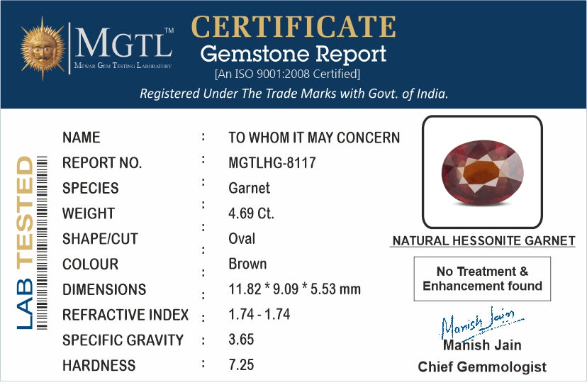 | Weight | 4.69 carat / 5.11 Ratti / 0.94 grams |