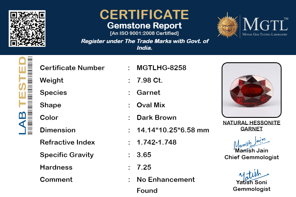 | Gemstone | Gomed Stone (Hessonite) |