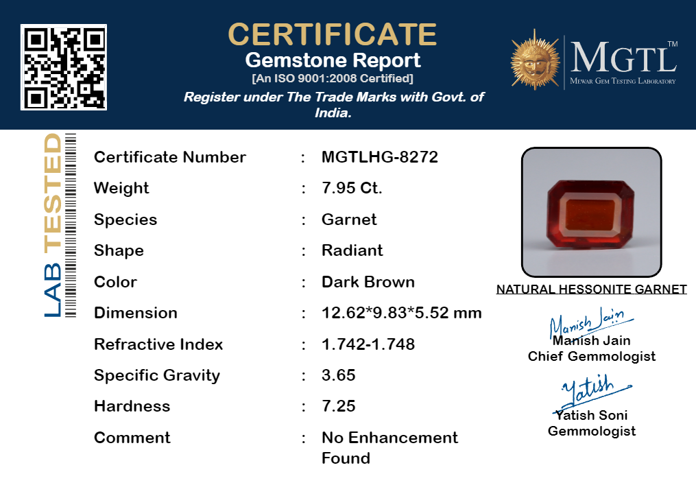 | Weight | 7.95 carat / 8.67 ratti / 1.59 grams |