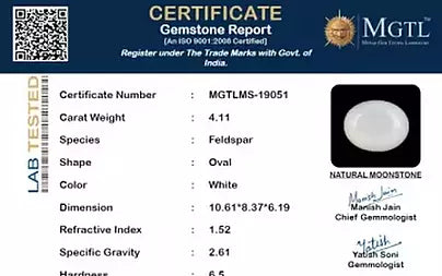 | Weight | 4.11 carat / 4.48 ratti / 0.82 grams |