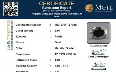 | Gemstone | Pyrite - (पाइराइट) |