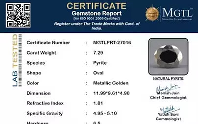 | Weight | 7.29 carat / 7.95 Ratti / 1.46 grams |
