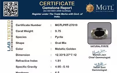 | Weight | 9.75 carat / 10.63 Ratti / 1.95 grams |