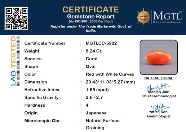 | Weight | 8.24 carat / 8.98 Ratti / 1.65 grams |