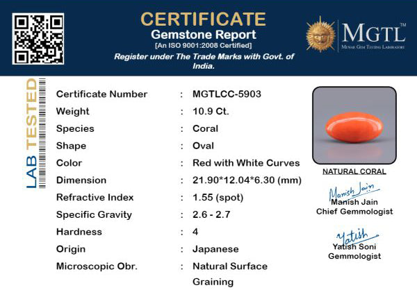 | Weight | 10.90 carat / 11.88 Ratti / 2.18 grams |