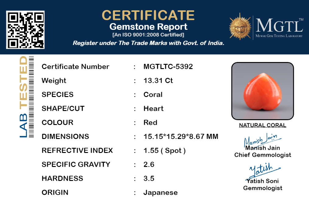 | Weight | 13.31 carat / 14.51 Ratti / 2.66 grams |
