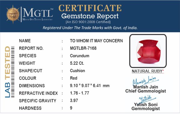 | Weight | 5.22 carat / 5.69 Ratti / 1.04 grams |