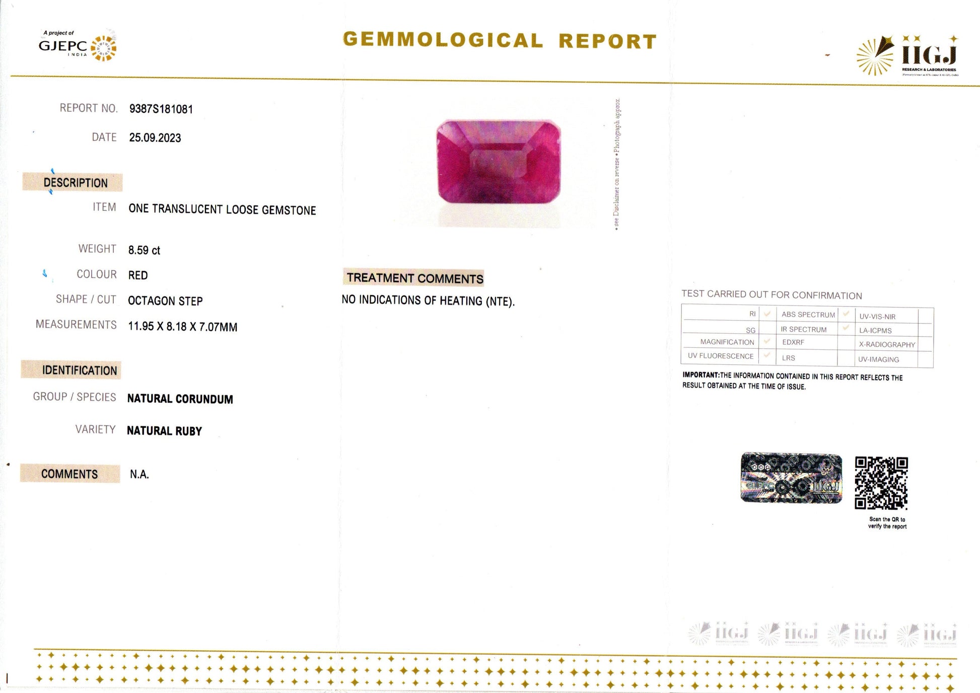 | Weight | 8.57 carat / 9.34 Ratti / 1.71 grams |