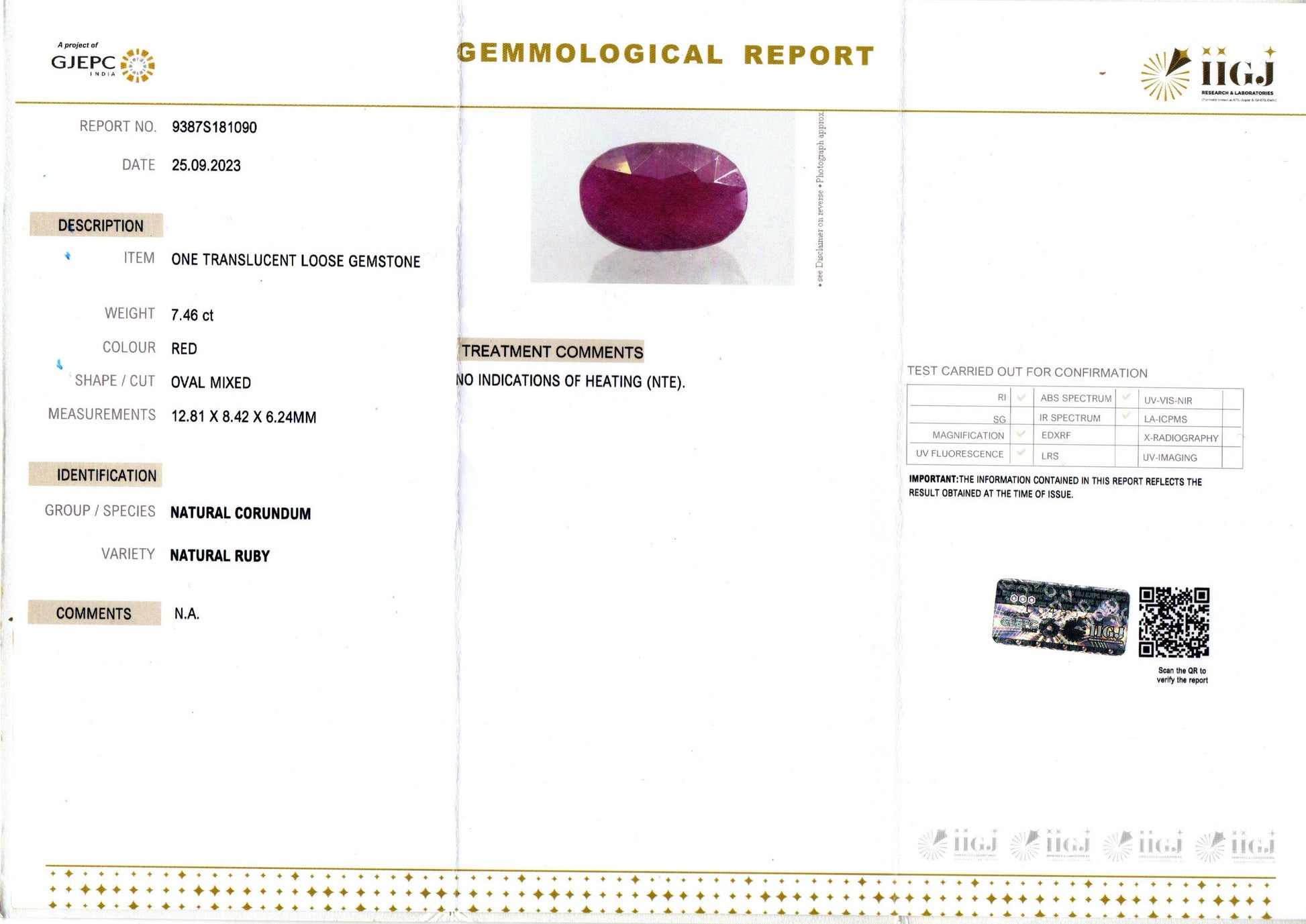 | Weight | 7.46 carat / 8.13 Ratti / 1.49 grams |