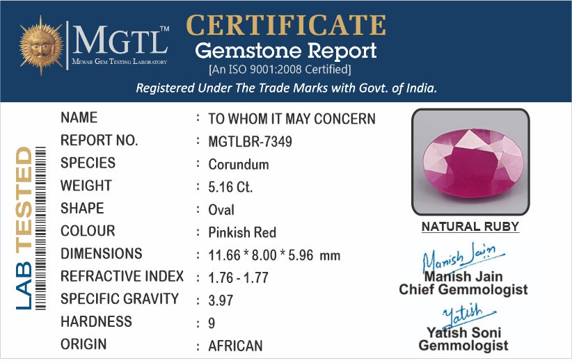 | Weight | 5.16 carat / 5.62 Ratti / 1.03 grams |