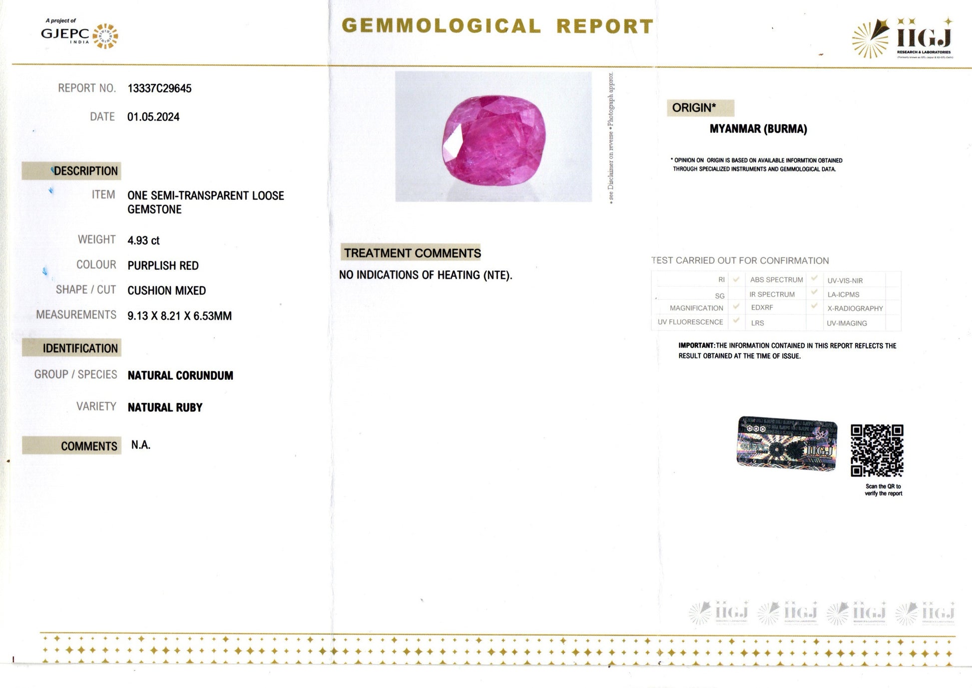 | Description | Ruby - 4.93 Carats (Manik - 5.37 Ratti) |