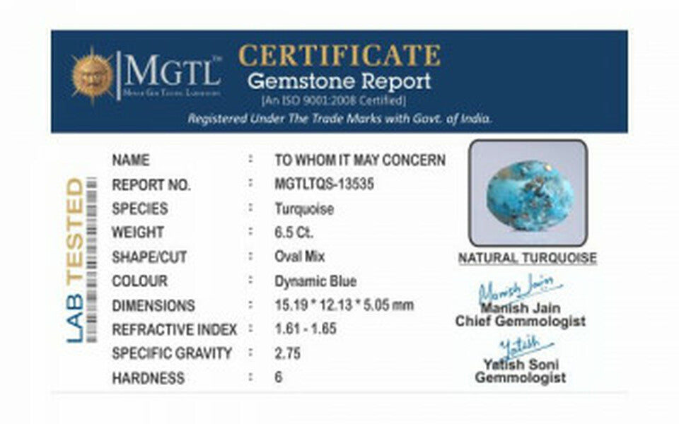 | Gemstone | Turquoise - (Firoza/à ¤«à ¤¿à ¤°à ¥‹à ¤œà ¤¾) |