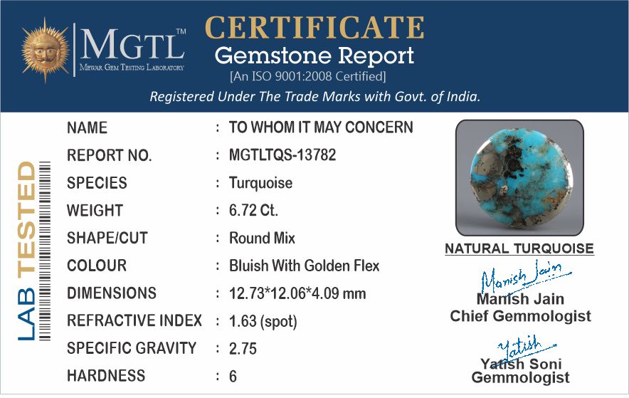 | Gemstone | Turquoise - (Firoza/फिरोजा) |