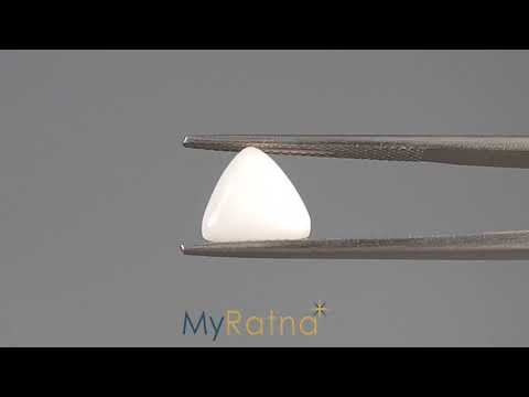 The White Coral gemstone weighs 2.77 carats and comes in a triangle shape. It’s from Italy, priced at 407 per carat with a Ratti weight of 3.02. Ideal for collectors of unique shapes!