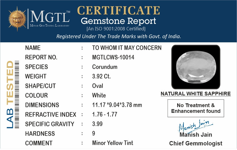 | Gemstone | White Sapphire - (Safed Pukhraj) |