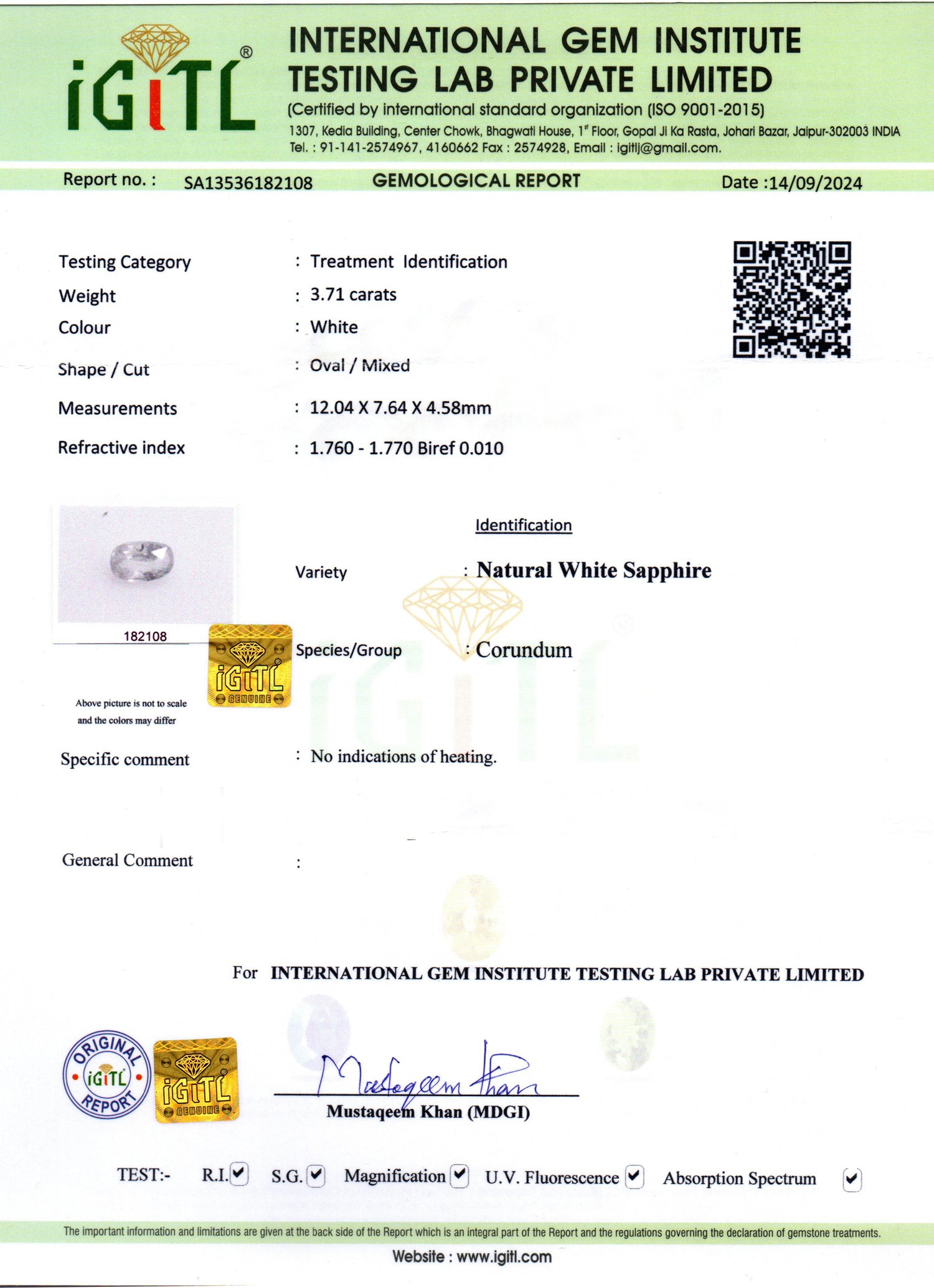 | Weight | 3.71 carat / 4.04 Ratti / 0.74 grams |