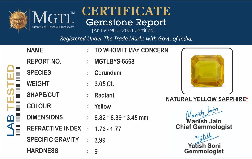 | Gemstone | Yellow Sapphire (Pukhraj) |
