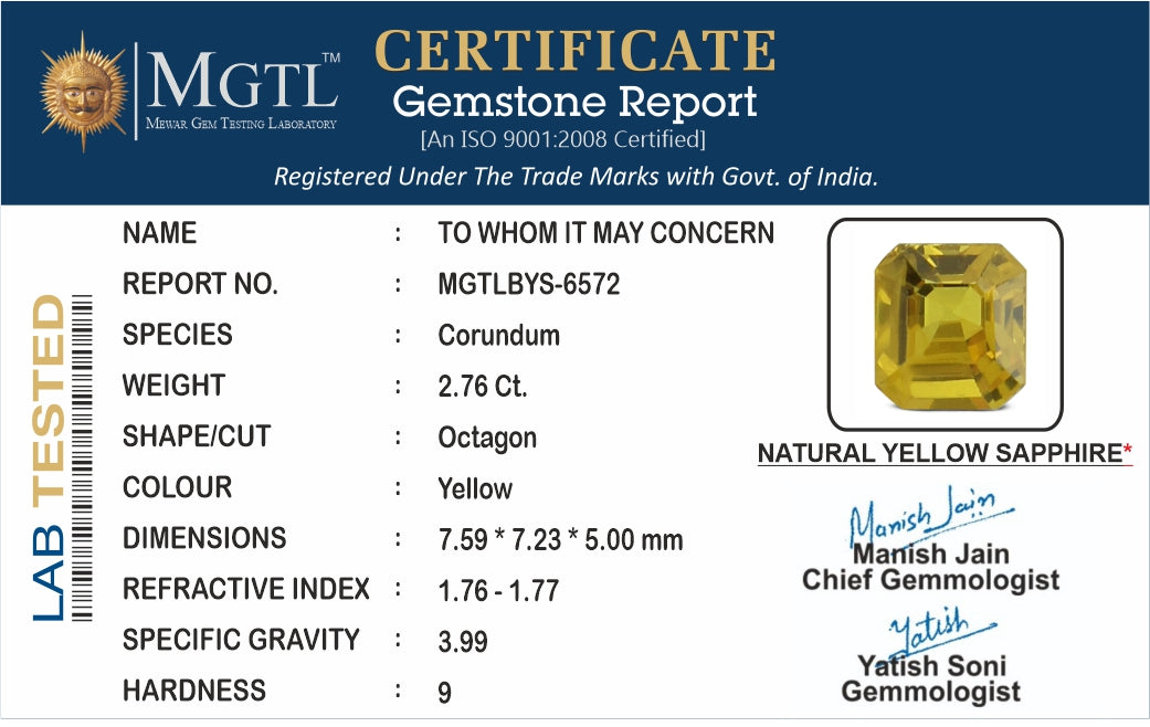 Yellow Sapphire - 2.76 Carats (Pukhraj - 3.01 Ratti)