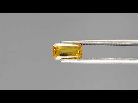 Natural 1.30 carat Thai yellow sapphire gemstone. Yellow Pukhraj has a vivid yellow color, clear transparency, and a well-executed faceted octagon shape with dimensions - 8.21 x 4.63 x 2.92 mm. Original 1.42 ratti Thai Pukhraj stone belongs to Corundum family, weighing 0.26 grams, and is treated with an industry-accepted procedure for enhanced brilliance. Certified by ISO lab, it’s a reliable choice for those seeking astrological benefits. Known to bring success, prosperity, and clarity of thought. Pukhraj stone price for this gemstone is just ₹7,303.