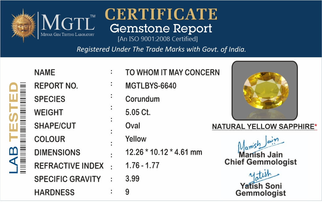 Gemstone | 5 Carat Yellow Sapphire (Pukhraj) |