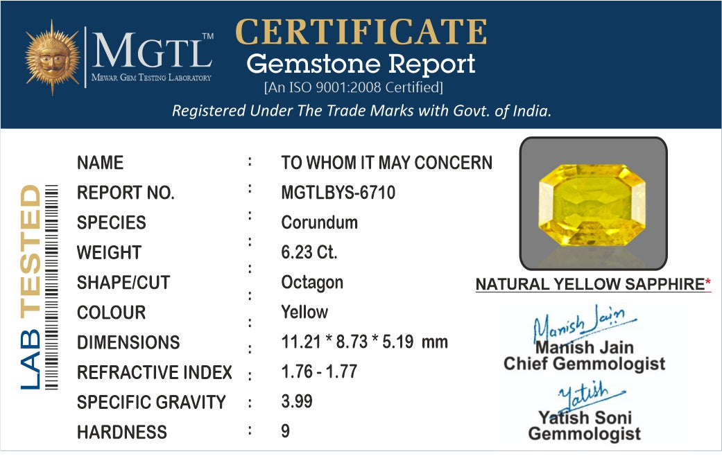 | Gemstone | Yellow Sapphire (Pukhraj) |