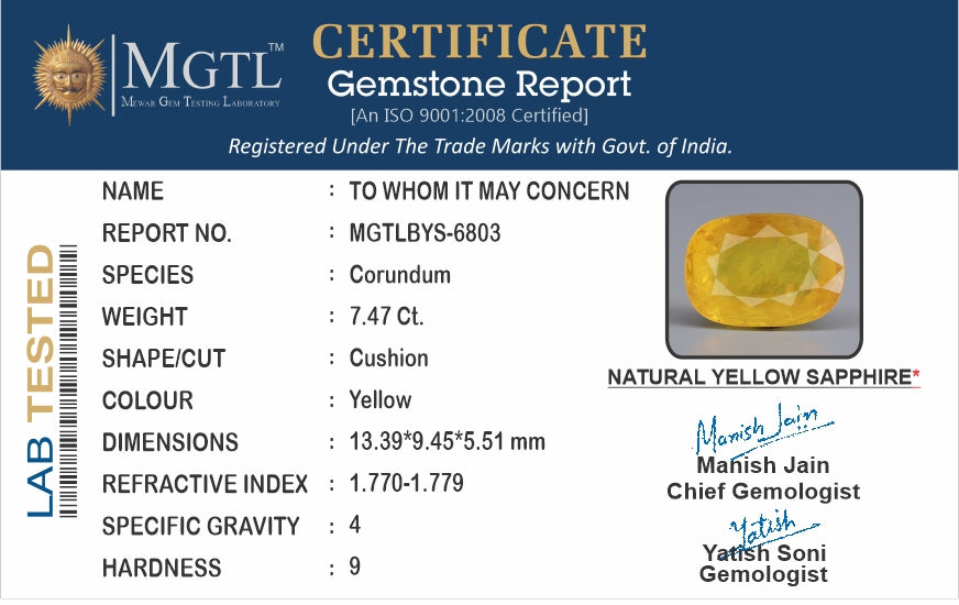 | Gemstone | Yellow Sapphire (Pukhraj) |